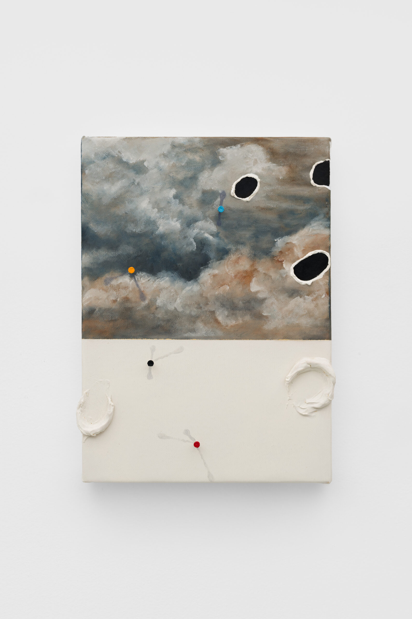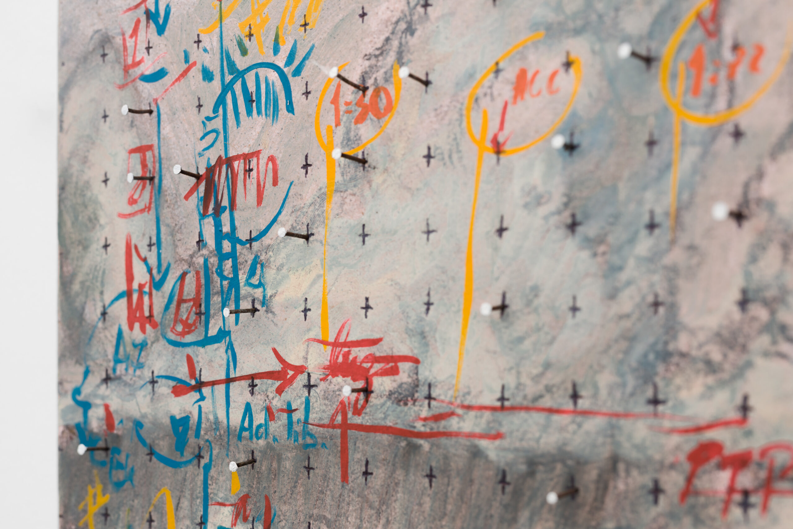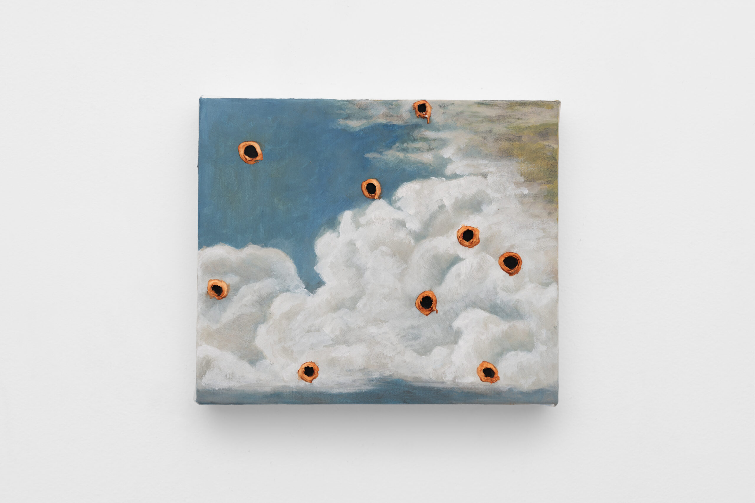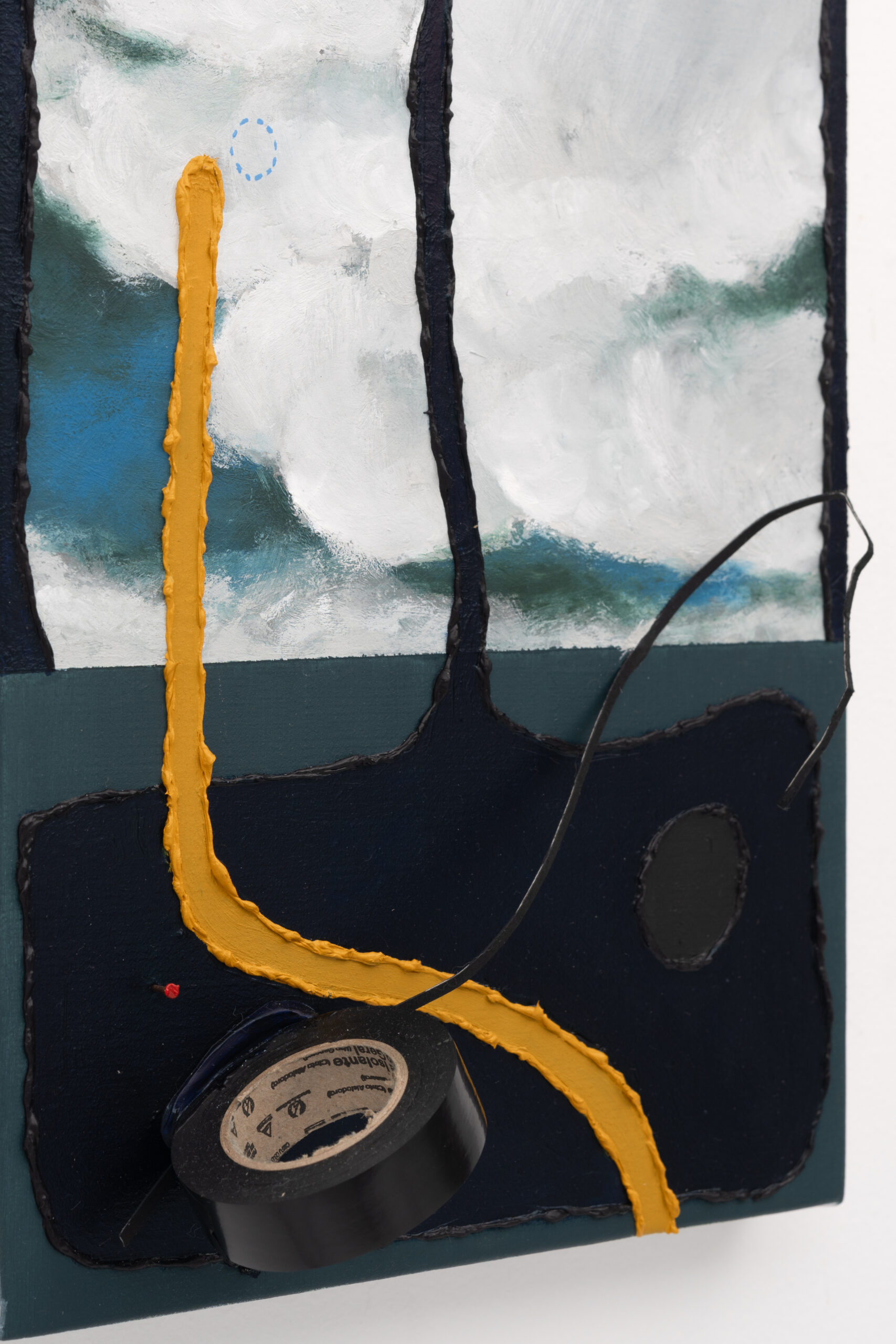 Olhar as telas de Five to nine é como olhar janelas acesas de madrugada que guardam um brilho, que são um pedaço de coisa viva e que trazem também um enigma, uma pergunta, um pedaço de narrativa. O que é o céu? O que são essas nuvens? O que são os elementos que estão ao lado, em cima, embaixo? O que está em primeiro plano? O que são as formas, linhas, números, cores?