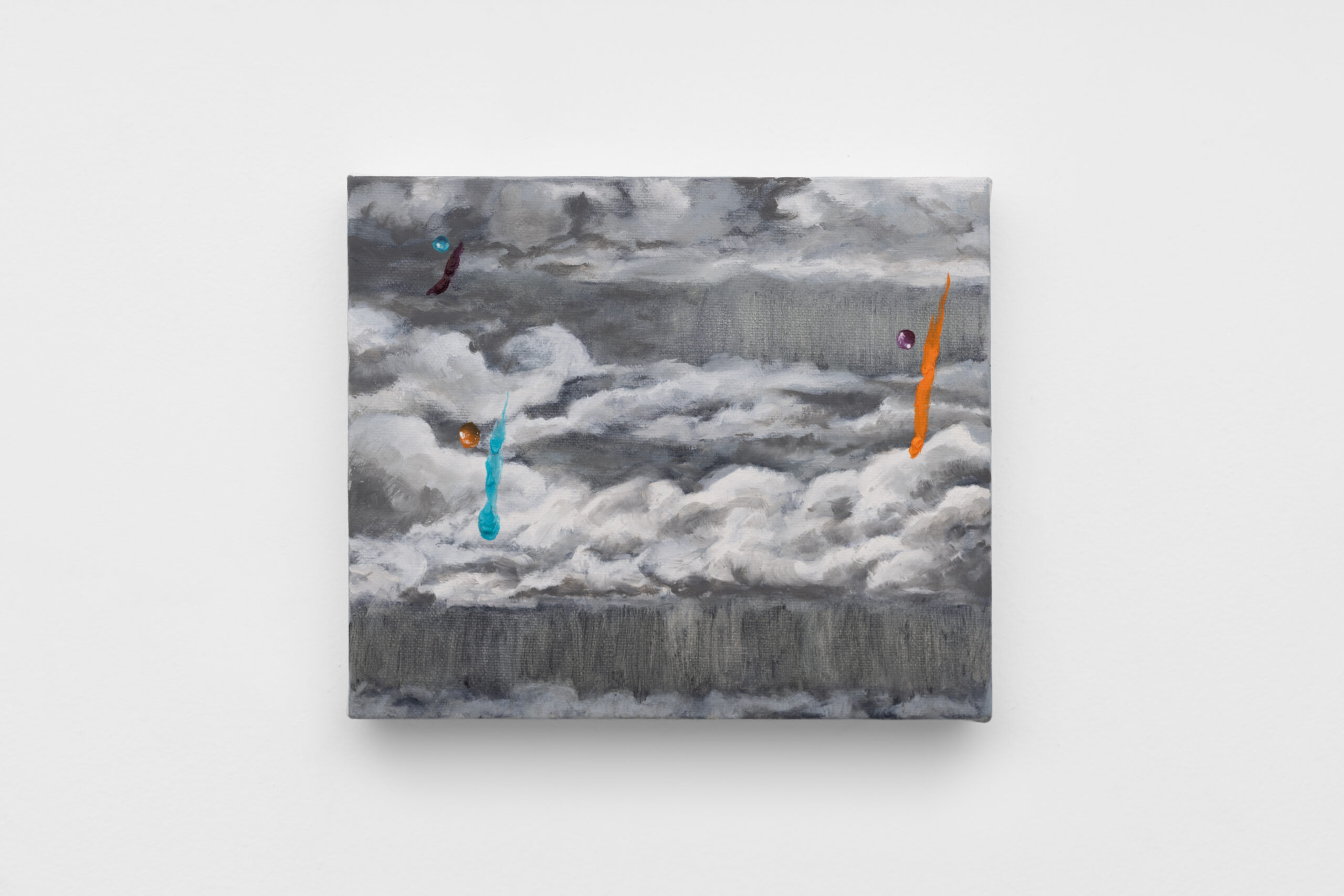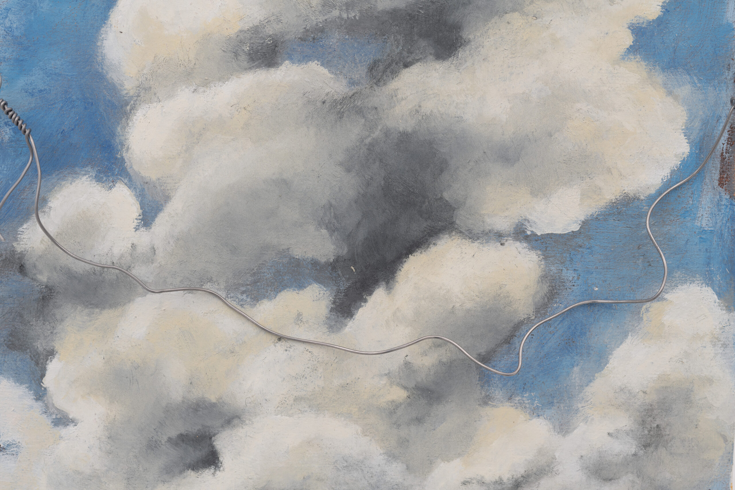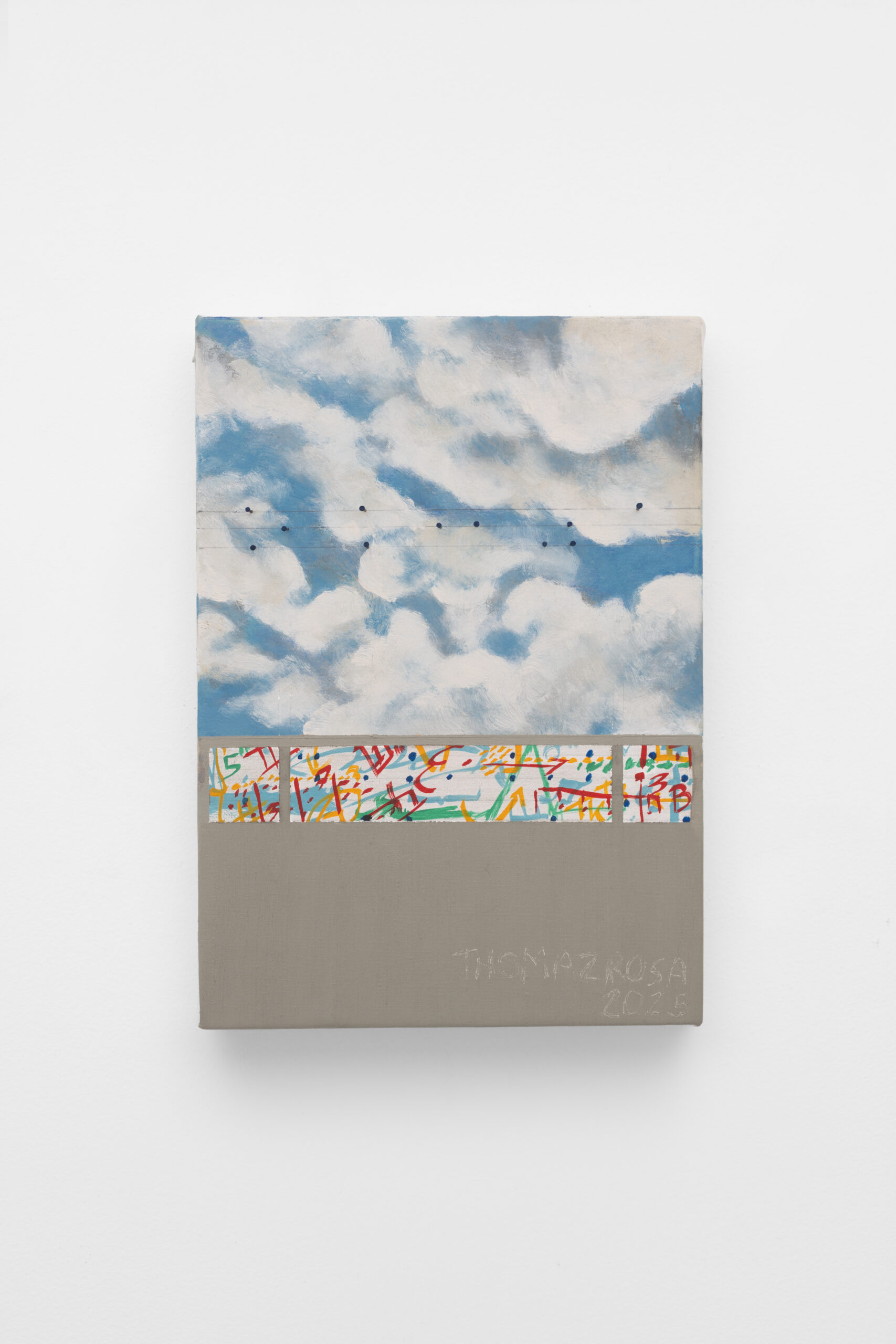Aqui um corte. Vi as obras do Thomaz Rosa numa manhã gelada e depois peguei a estrada. Estava dentro de uma bolha de tédio que parecia impedir qualquer ação, quando de repente meu olhar foi atraído pelas nuvens: um cachorro, um pote, um rosto, um pedaço de algodão se esfiapando. Nuvens passam, se transformam, engolem as formas. Fiquei como aquele estrangeiro de Baudelaire que não tem família, nem amigos, não quer a beleza nem o dinheiro, mas ama, mais do que tudo, as nuvens maravilhosas que passam lá longe… E o que elas trazem embutidas.